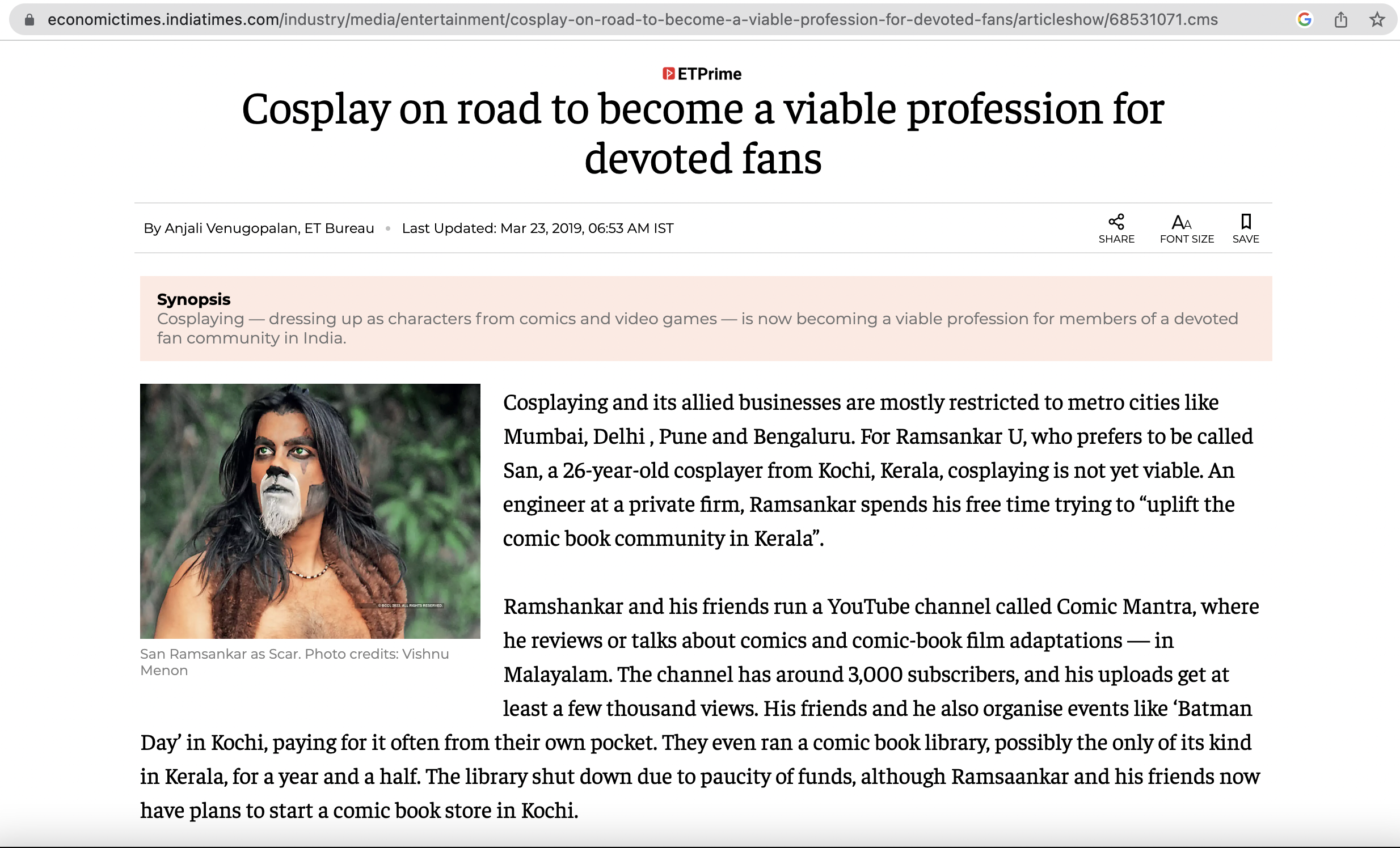My love of comics and pop culture inspired me to start Kerala Comics Brotherhood, the first community of its kind in Kerala. Our goal is to promote the medium of comics and pop culture through online and offline events. Through this community, we have been able to discover and promote new indie comic book creators from Kerala. Additionally, I am proud to be the patron of the Marvel Fans India community.